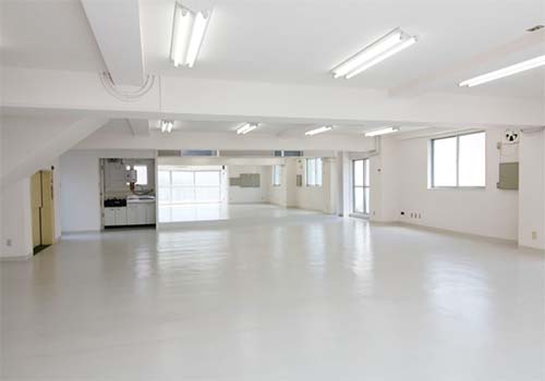 スタジオ内は、白を基調とした壁、自然光が差し込む大窓を採用。空間を遮る柱もないので、とても撮影しやすい空間です。