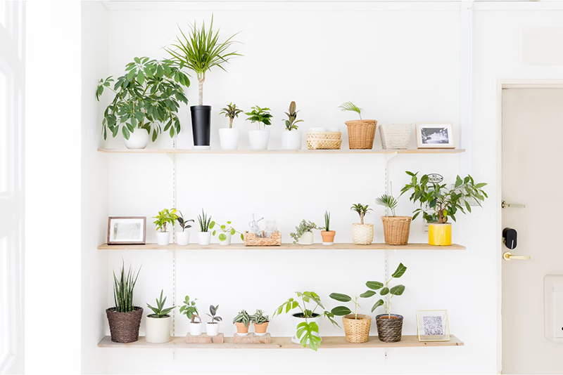 シンプルな棚とミニ観葉植物 棚には背景として使いやすいミニ観葉植物を沢山ご用意しました