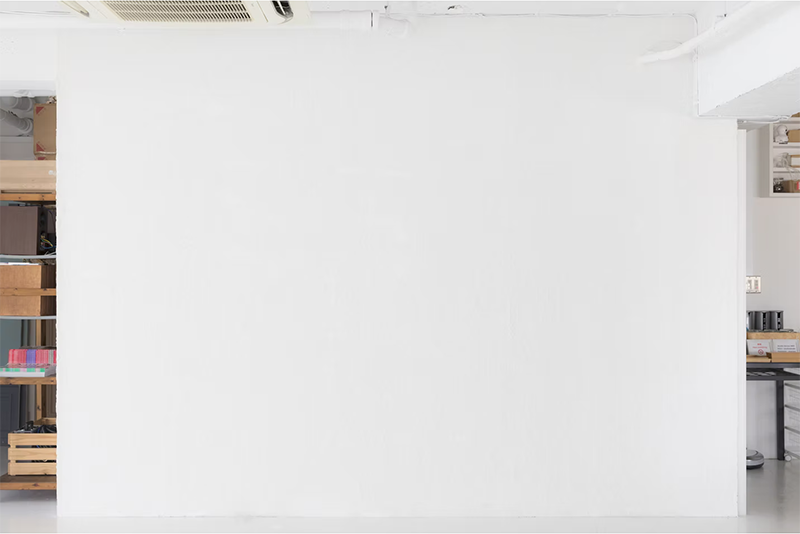 シンプルな白壁。幅3.7m、高さ2.8m