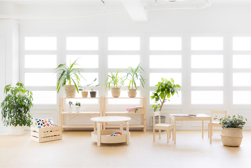 白木の明るい家具と植物 柔らかい雰囲気に合わせた白木の明るい家具もご用意