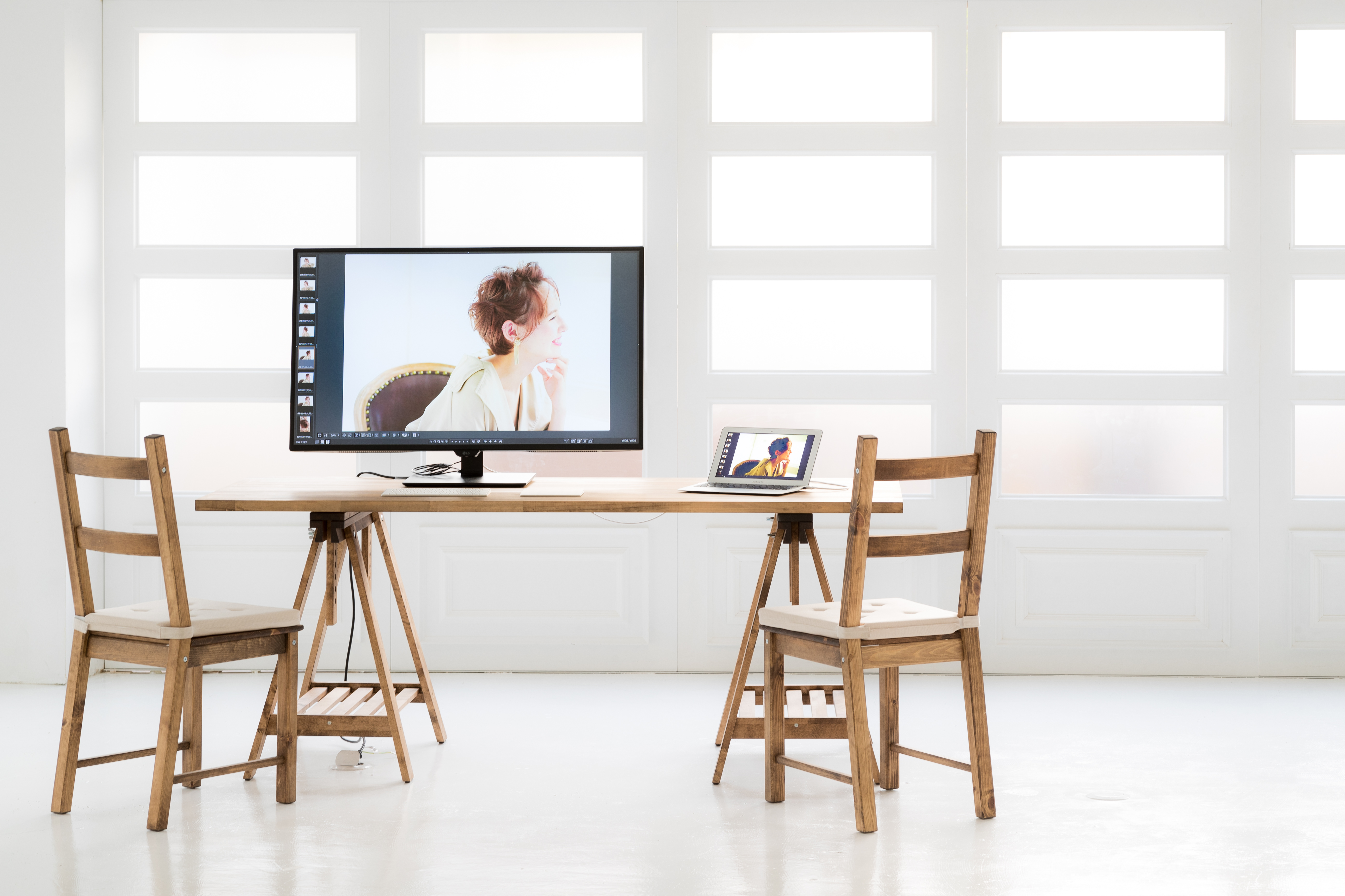 雨の日や天候の不良、早朝や日没後の撮影にも安心な窓の裏方ライティングが可能です
