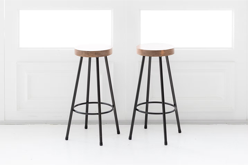 黒のシックなカウンターチェア×2です。インタビューや対談、ファッション等に。