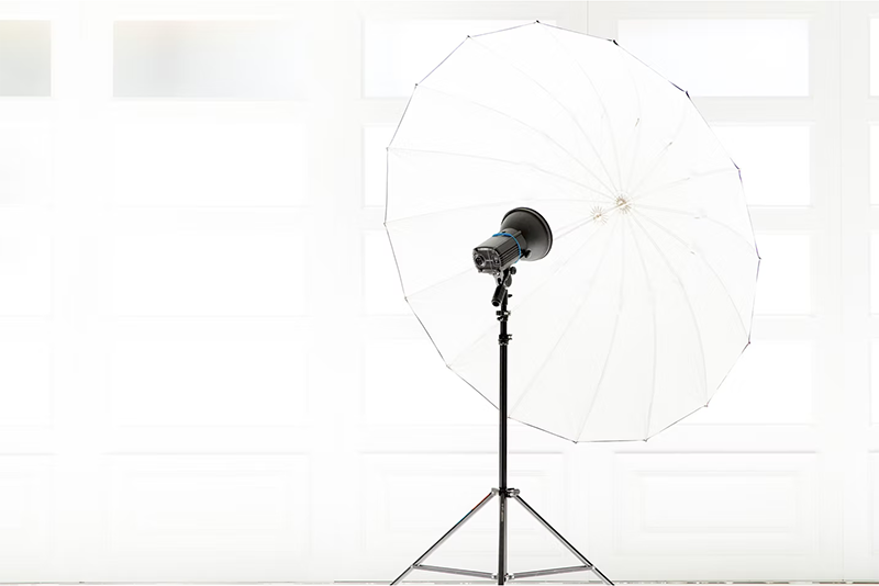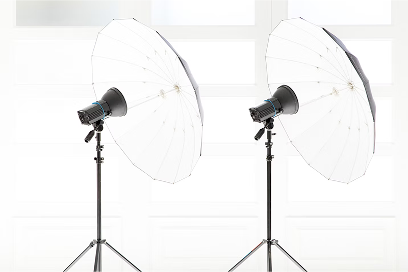 超特大145cmのアンブレラです。1灯でも広範囲の柔らかい光をライティングできます。