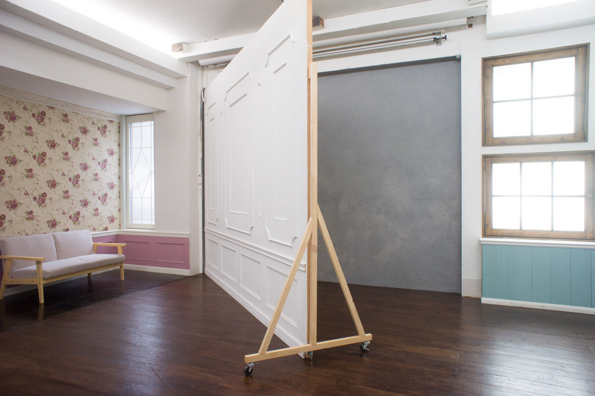 こちらはパターンの壁紙コーナーです。様々な背景で撮影が可能です。