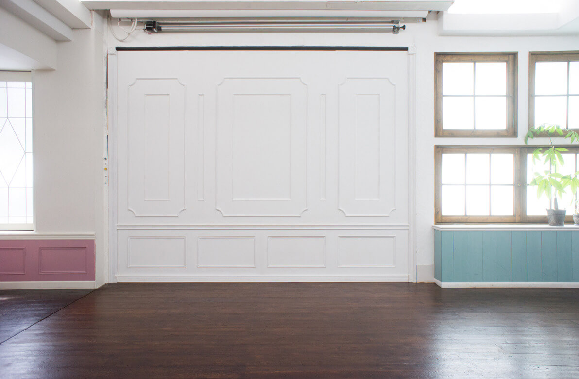 メイン壁は2種類選べます。こちらは白色のモールディング壁面です。