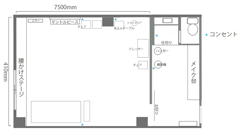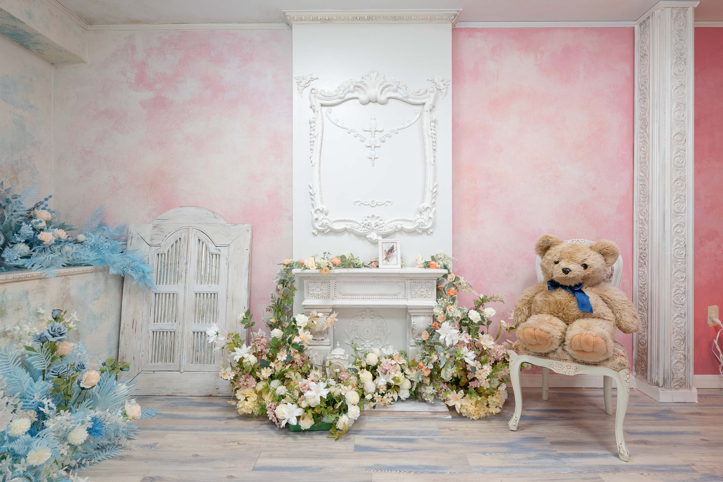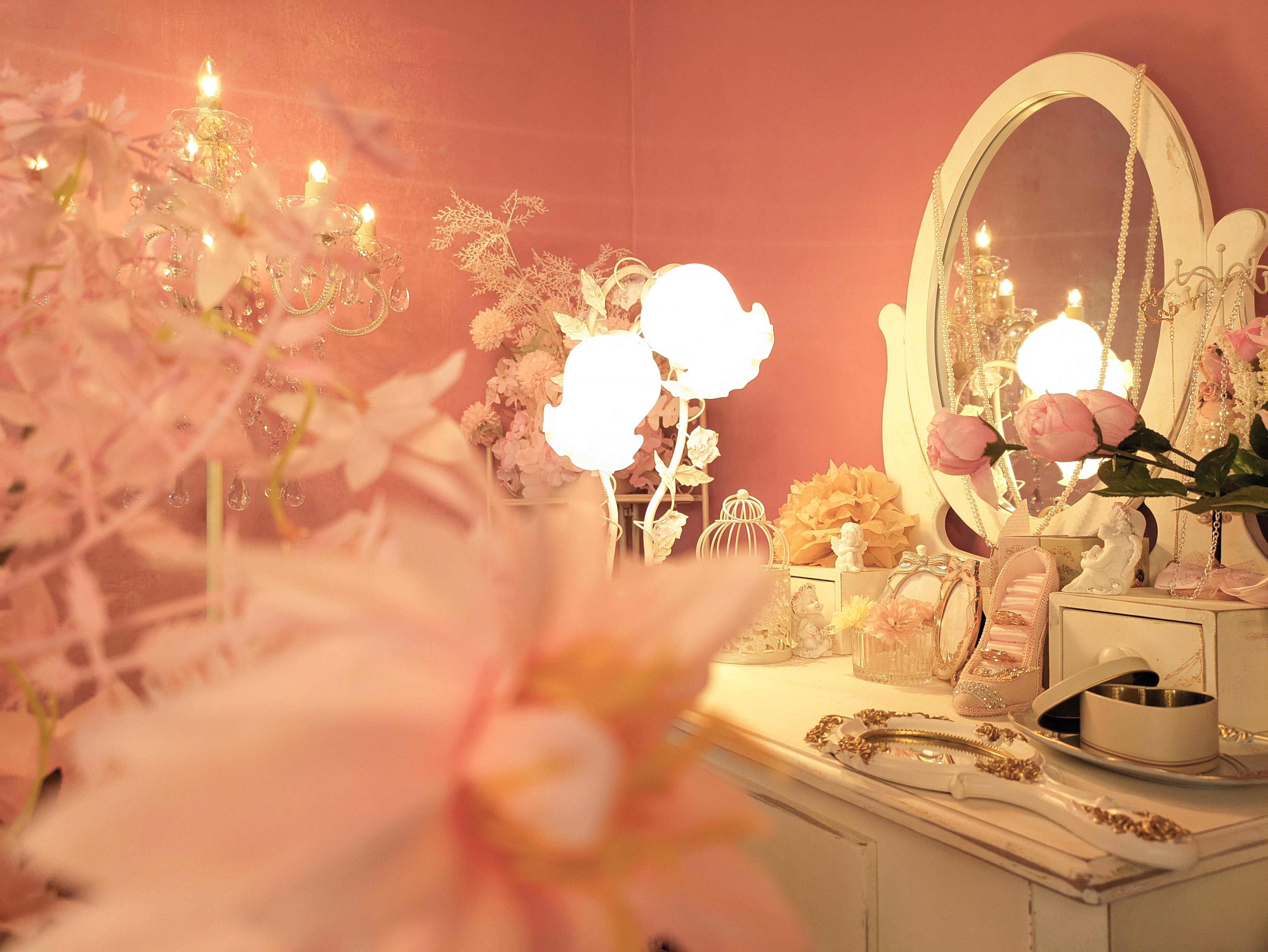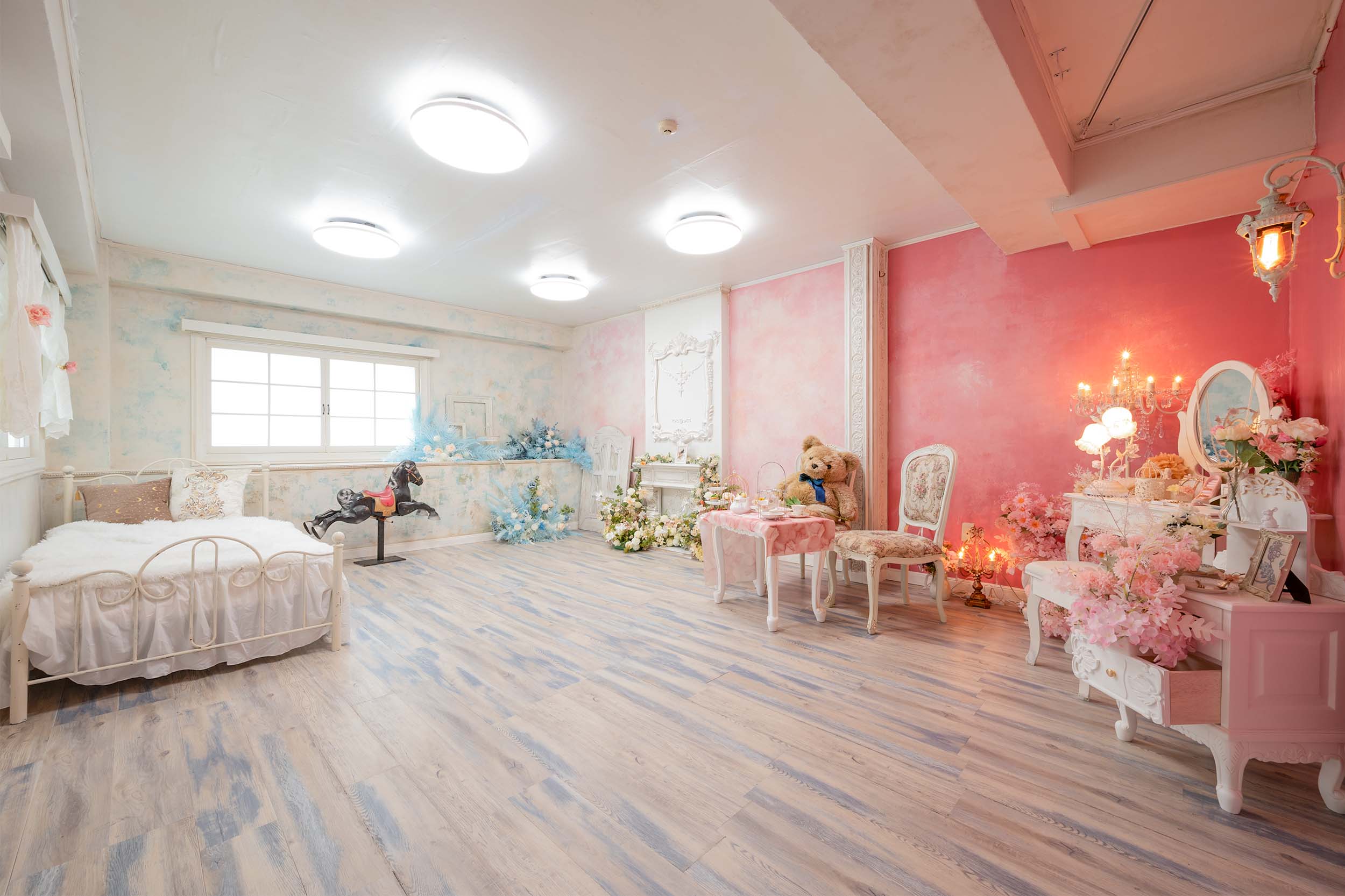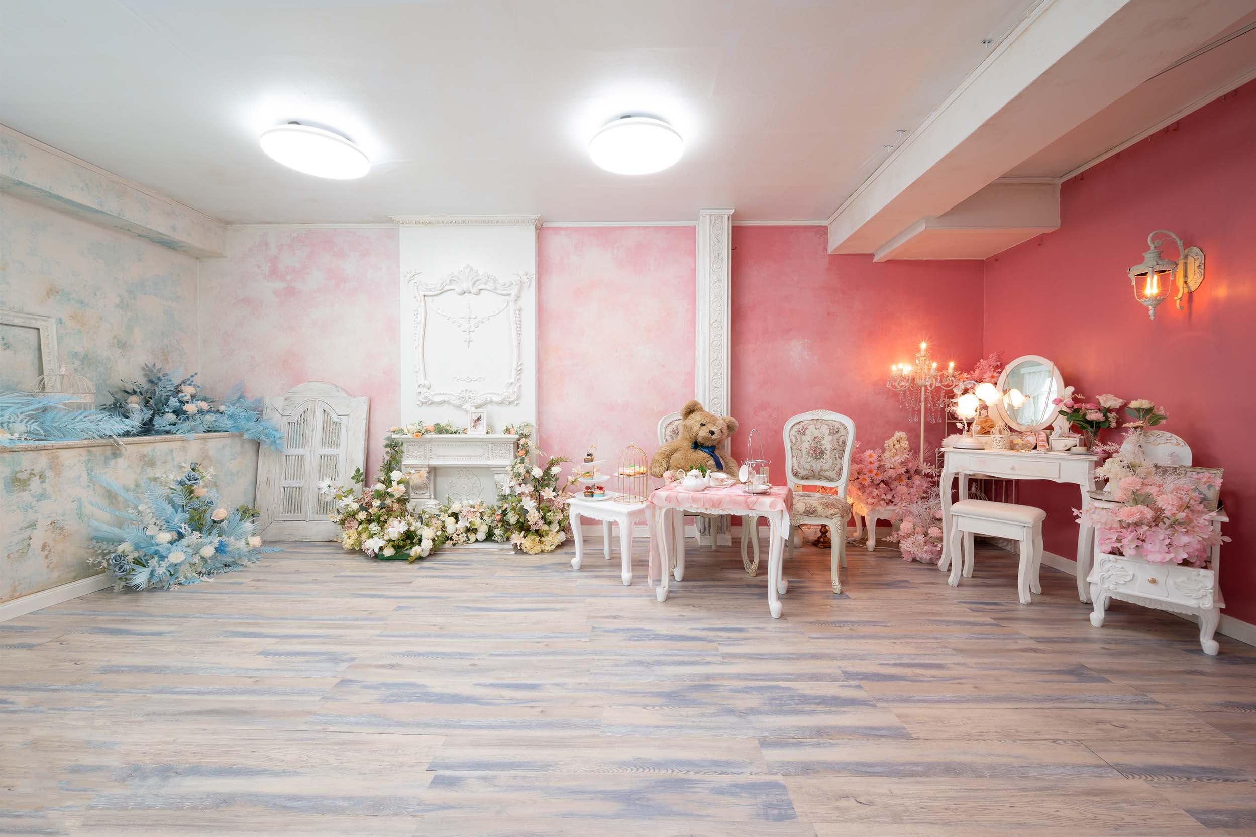 白・青・ピンクを基調とした柔らかくガーリーなテイストながらもクオリティの高い壁面や家具・インテリアで「可愛い」以外のシーンも多彩に撮影可能です。