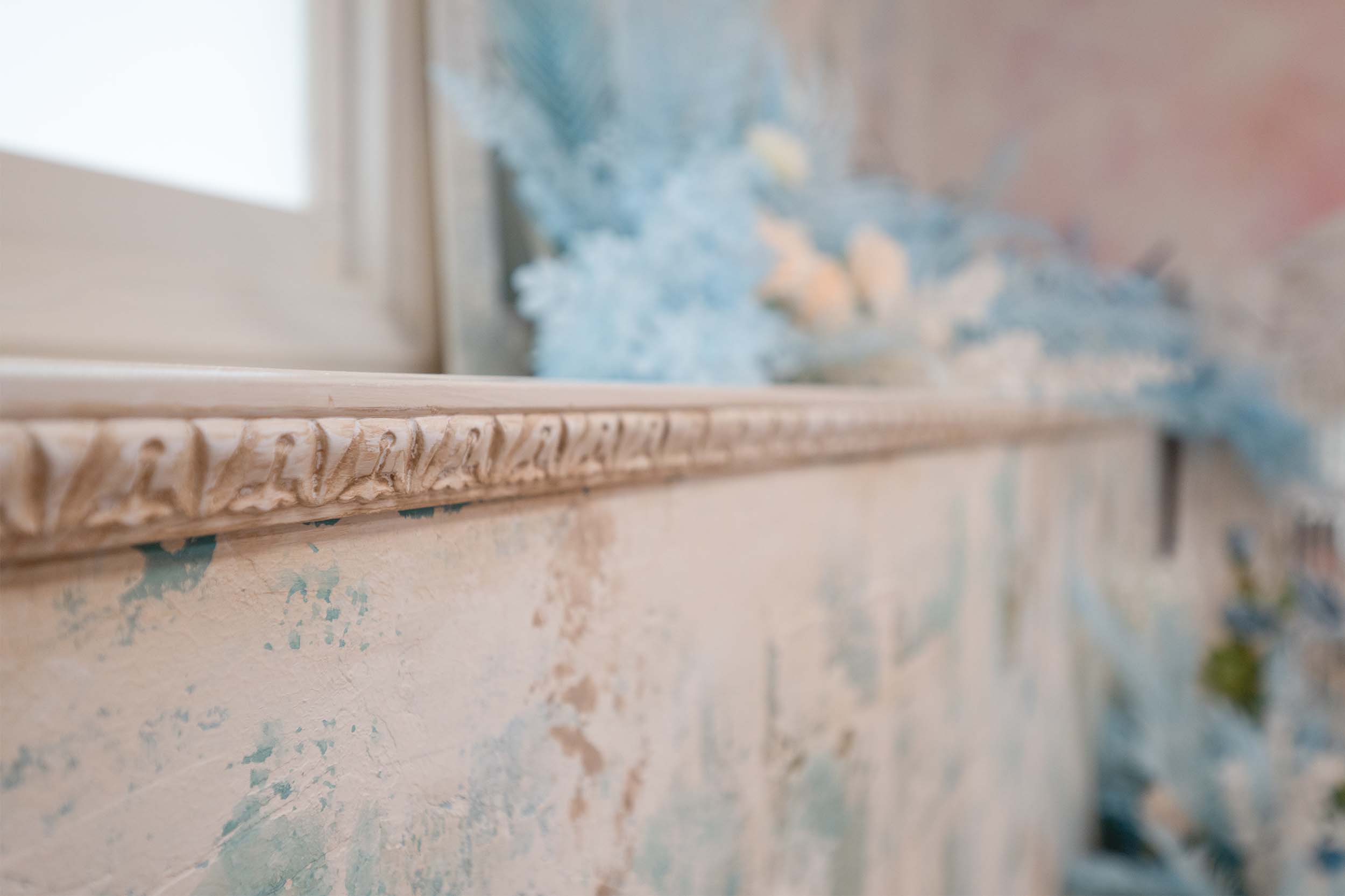 白系・青白・柔らかピンク・ピンクそれぞれの壁面塗装はすべて手塗りで、まるで一枚絵を思わせるよう各ブースのインテリアとマッチする色合い・風合いに演出しております!