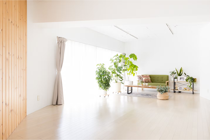 家具や観葉植物、小物類も充実しており、ゆったり落ち着いたカフェテイストな撮影や、リビングやダイニングを活かしたアットホームな“お家時間”の再現などにもぴったりです。
