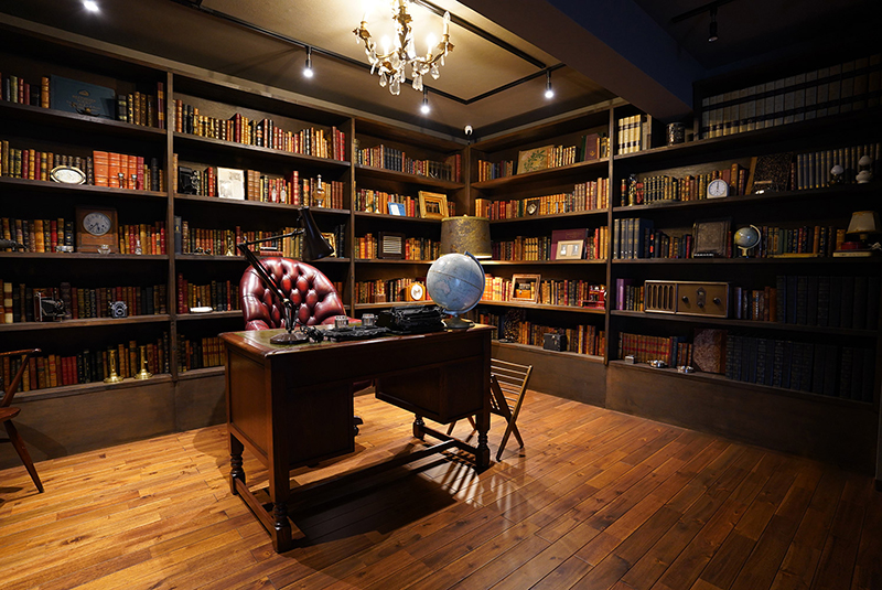 洋書や雑貨、プレジデントデスクやチェスターフィールドの社長椅子など、全てヨーロッパで仕入れた本物のアンティークを陳列し、温もり溢れる上品な空間となっております。