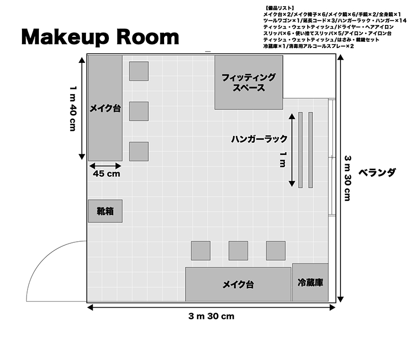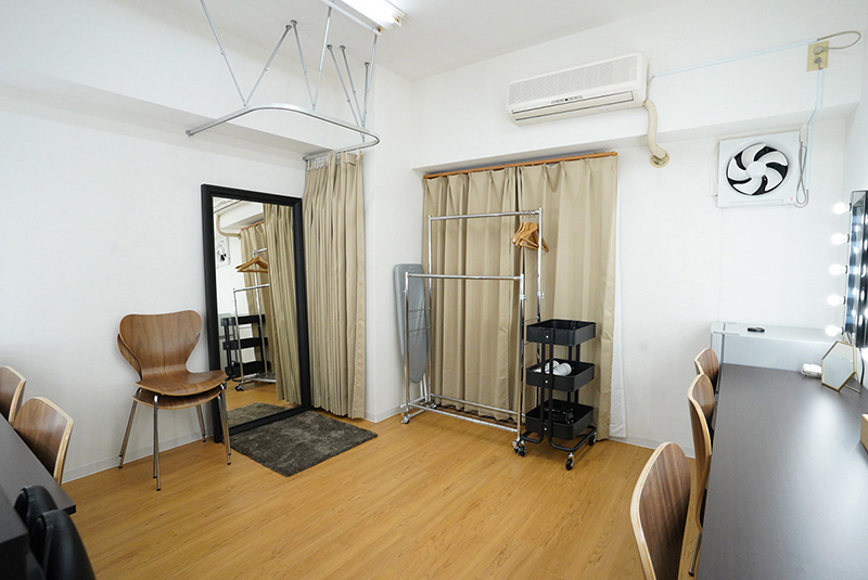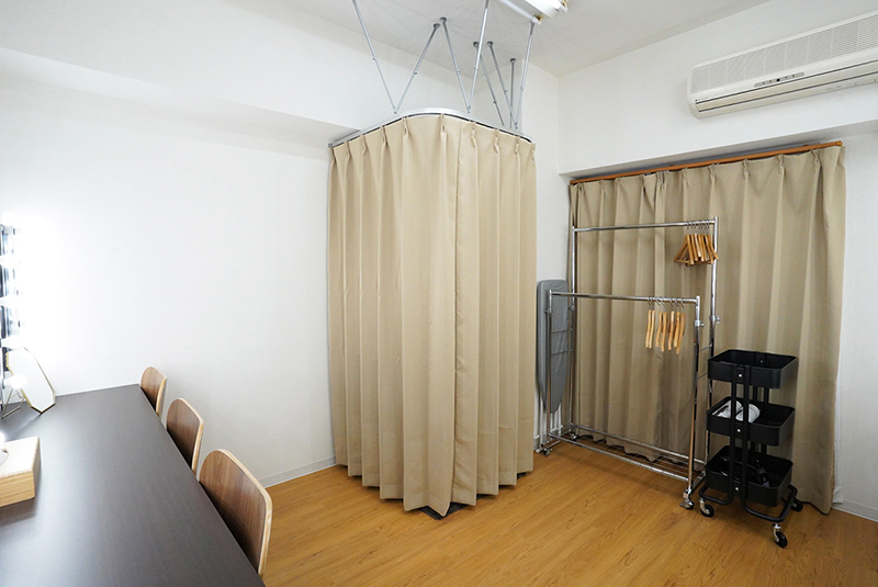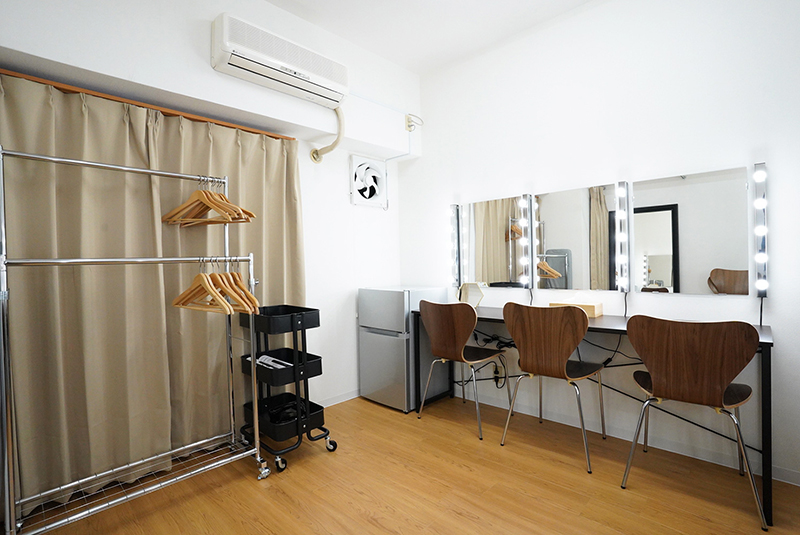 3タイプのエリア+別部屋でメイクルームをご用意致しております。