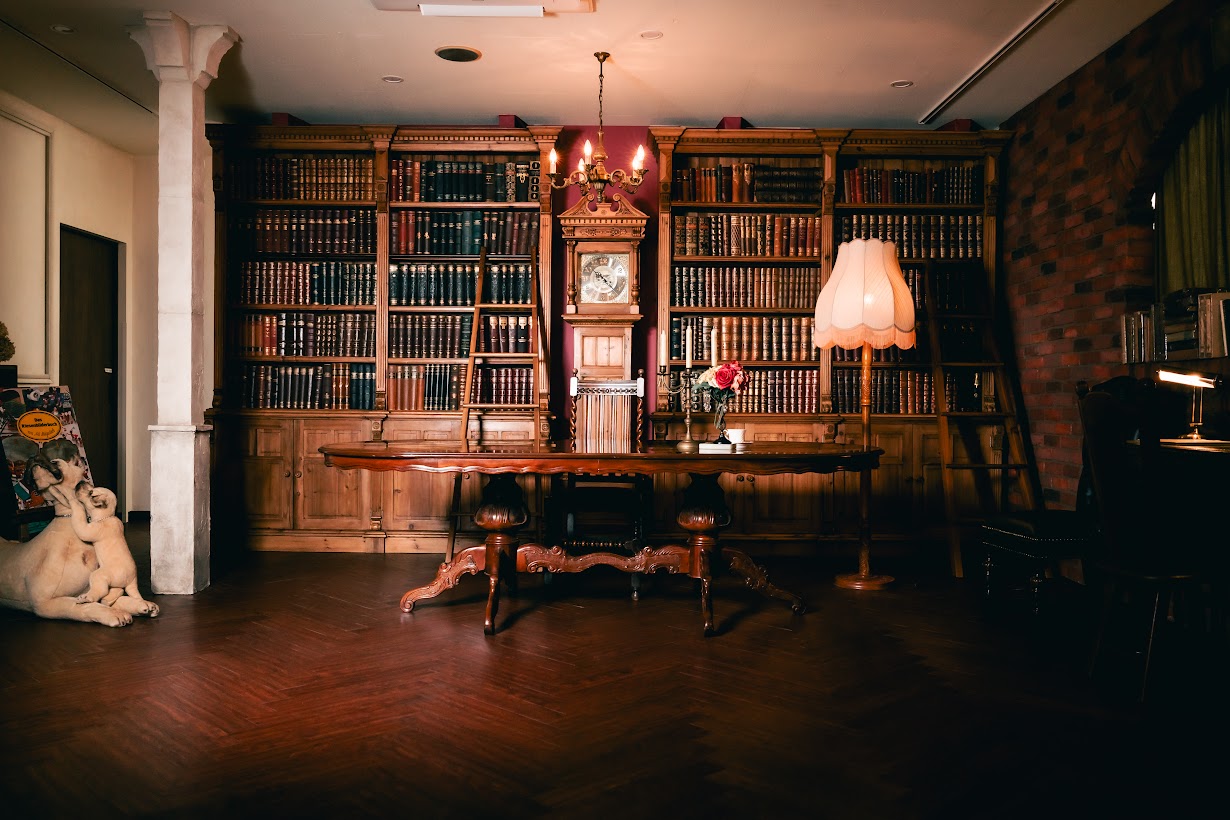 アンティーク洋書大型本棚、自然光、ゴシック、ロココなどこだわりぬかれた空間を格安でお楽しみいただけます。