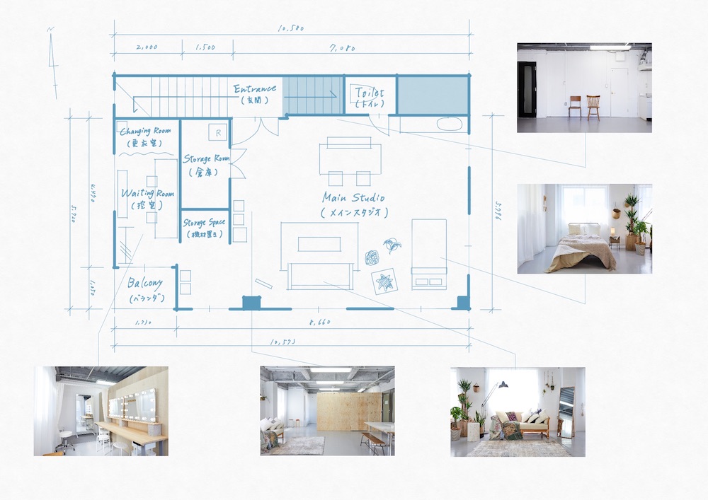 60㎡の広さで空間を活かした画角の広い撮影や、生活感のあるリアルなシチュエーション撮影にもピッタリ!