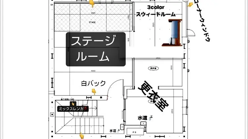 オーソドックスな白ホリから汎用性の高いゴシック・メルヘン・和室に廃墟・屋上に加え、豪華ライトアップ&スクリーン付きのアイドルステージetc…