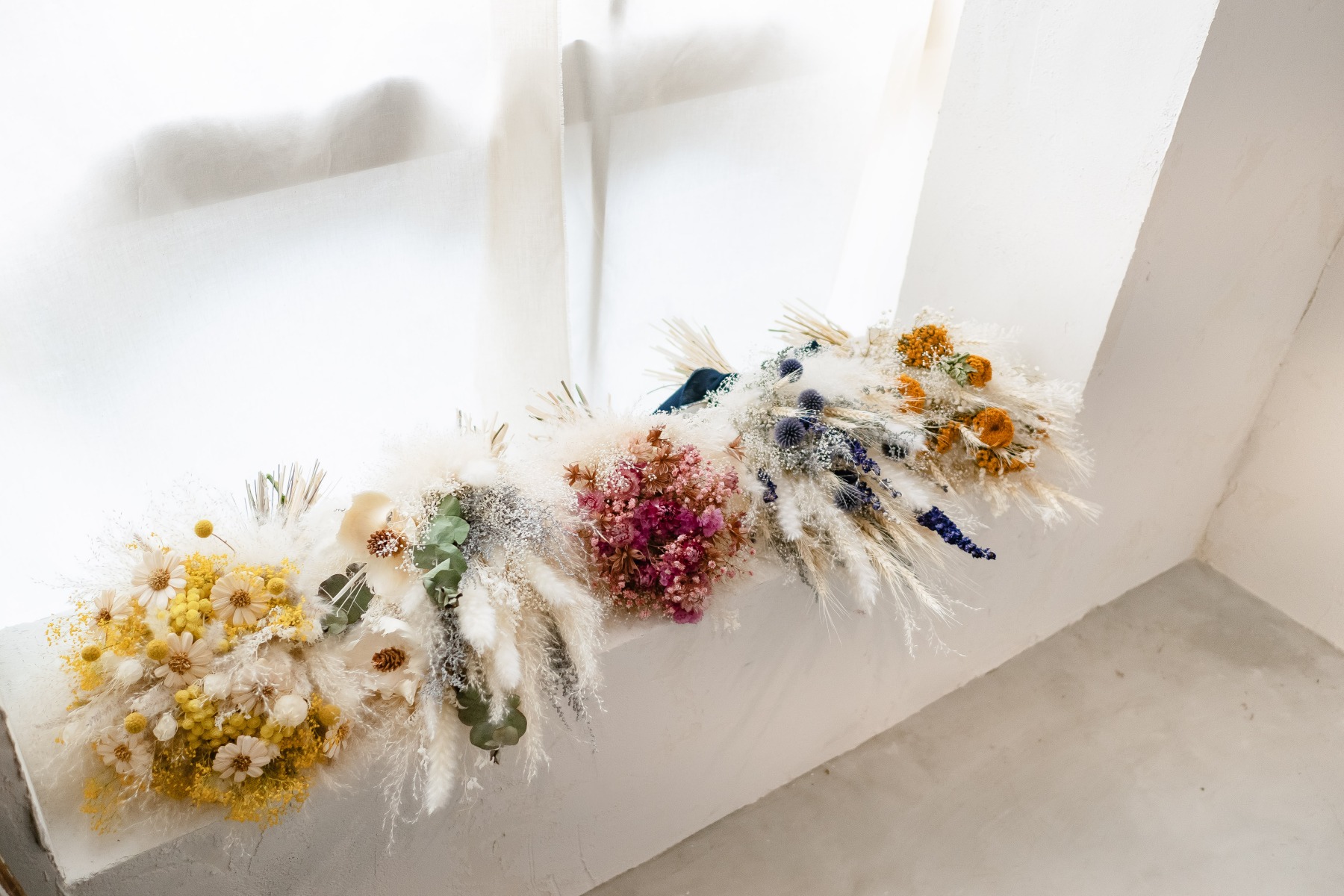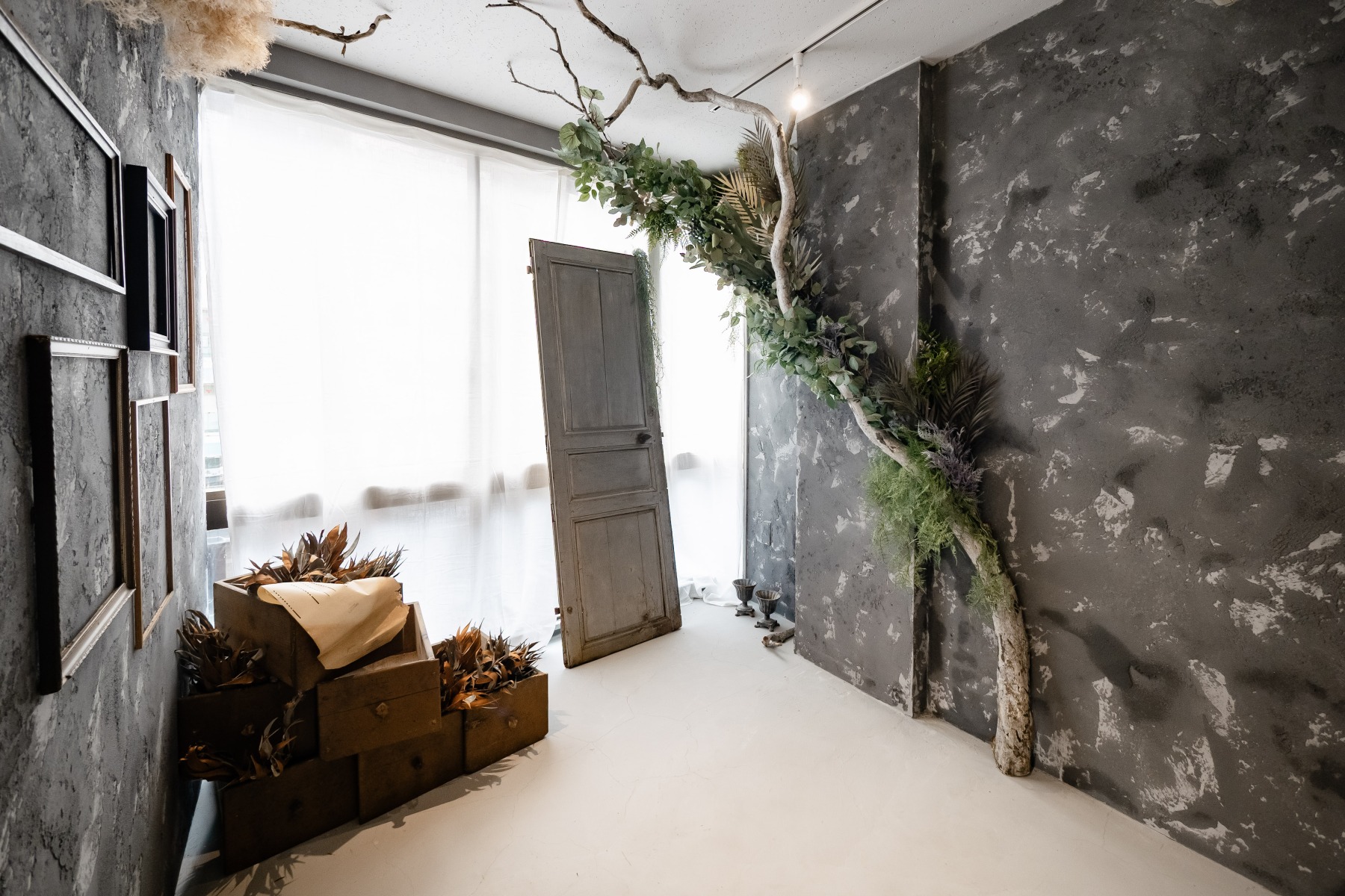 幻想的なドライフラワーや本物のアンティーク家具、座れるアーチ壁、各種撮影小物を自由に組み合わせることで、作品世界に合わせたオリジナルのセットを創り上げることができます。