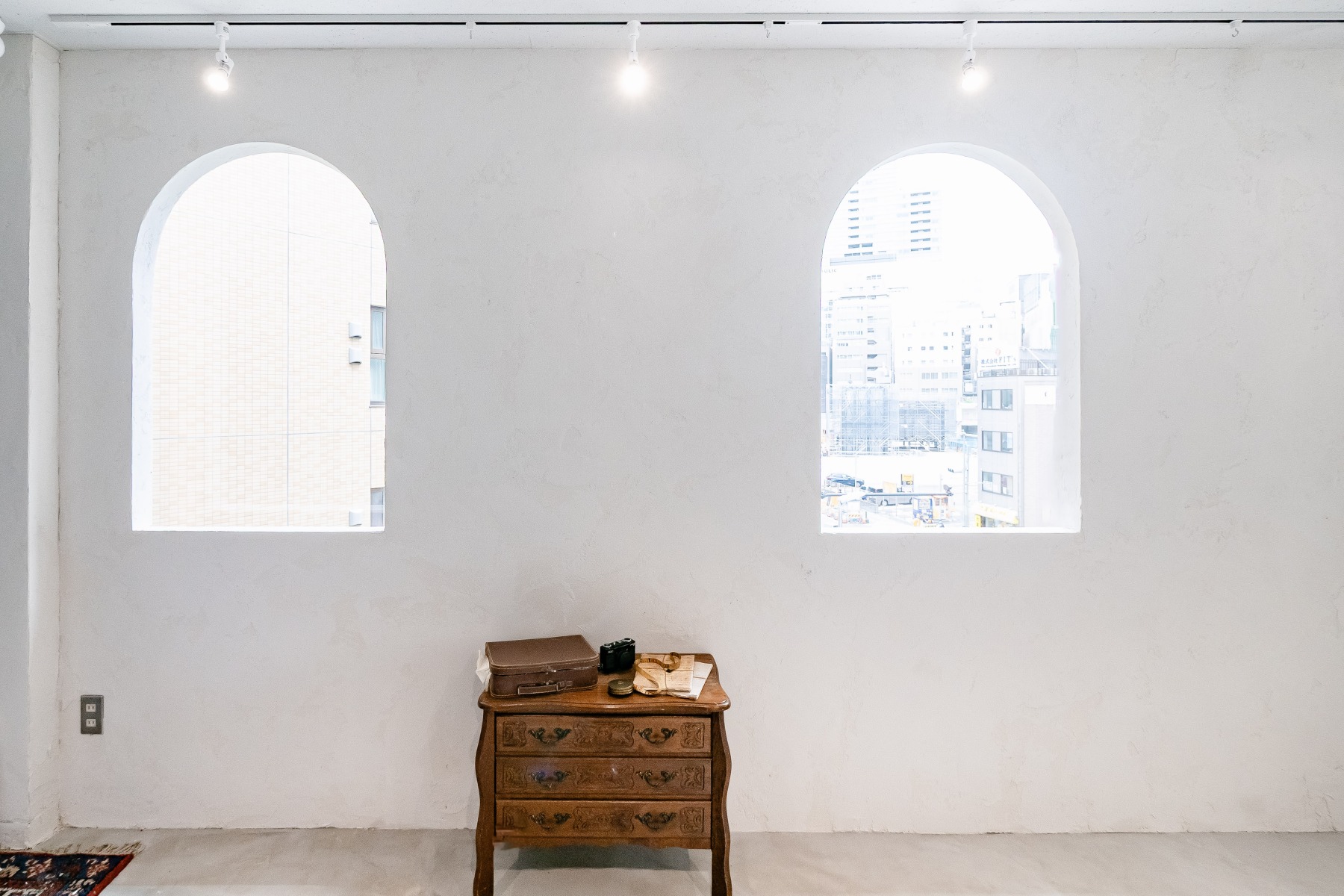 2面の大きな窓から降り注ぐ柔らかな自然光と、白と黒が織り成す美しいコントラストが特徴で、まるで絵画の中に入り込んだような独特の非日常空間が広がります。