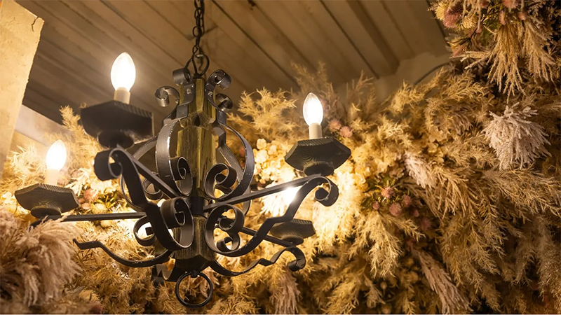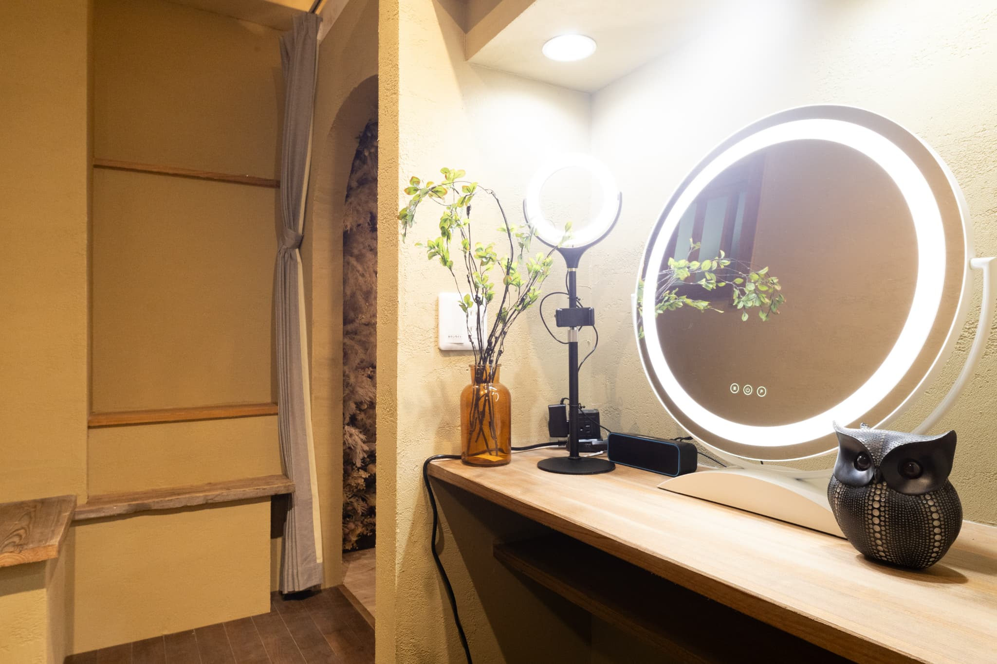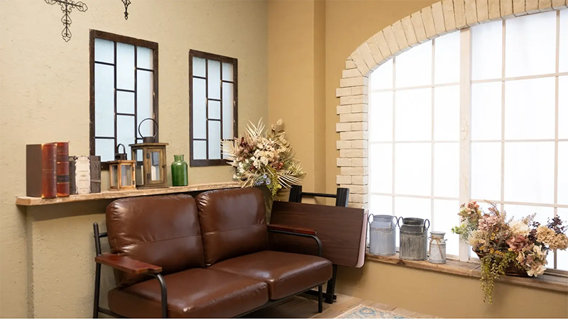 暖色灯とホワイト・ブラウンの世界観で撮影シーンで汎用性の高いアンティーク感に加え、ここならではの郷愁感も表現されています。