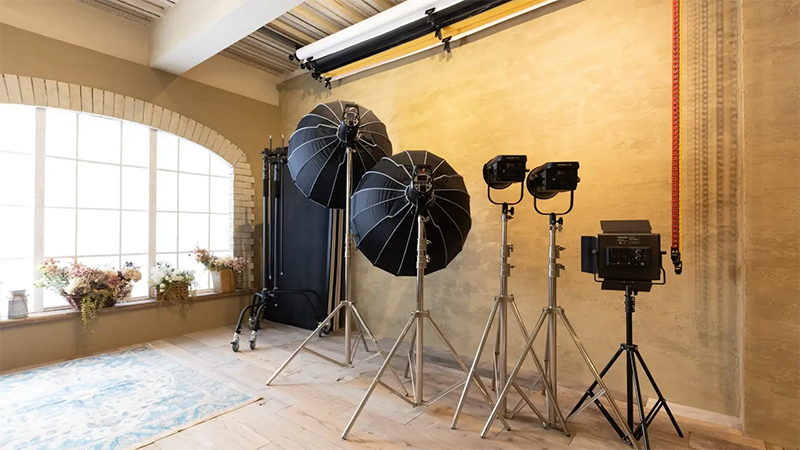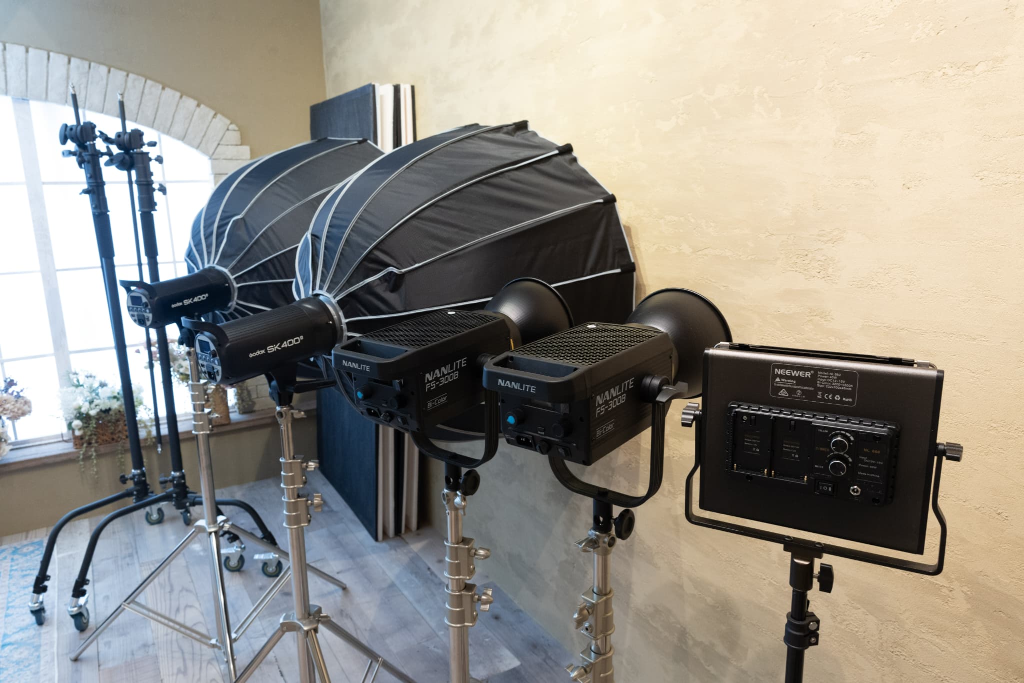撮影小物や機材・カラーバックなど設備面でも至れり尽くせりの充実さ!