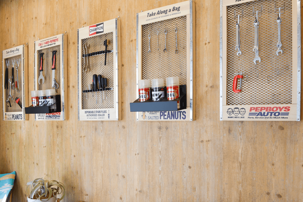 ディスプレイ①工具やスプレー缶でジャンクなテイストも演出♪