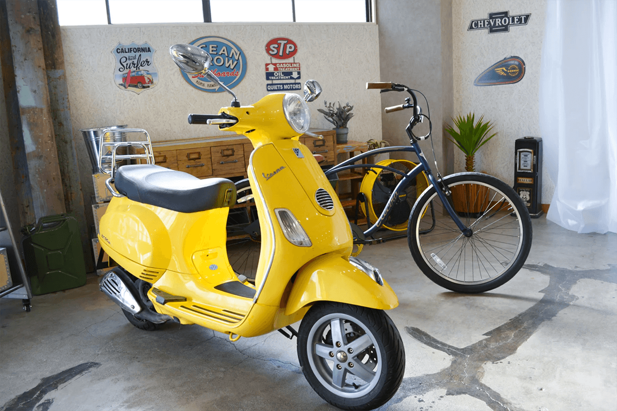スタジオ内のバイクや自転車などを活用して、ここでしか撮れない個性的な撮影ができます。
