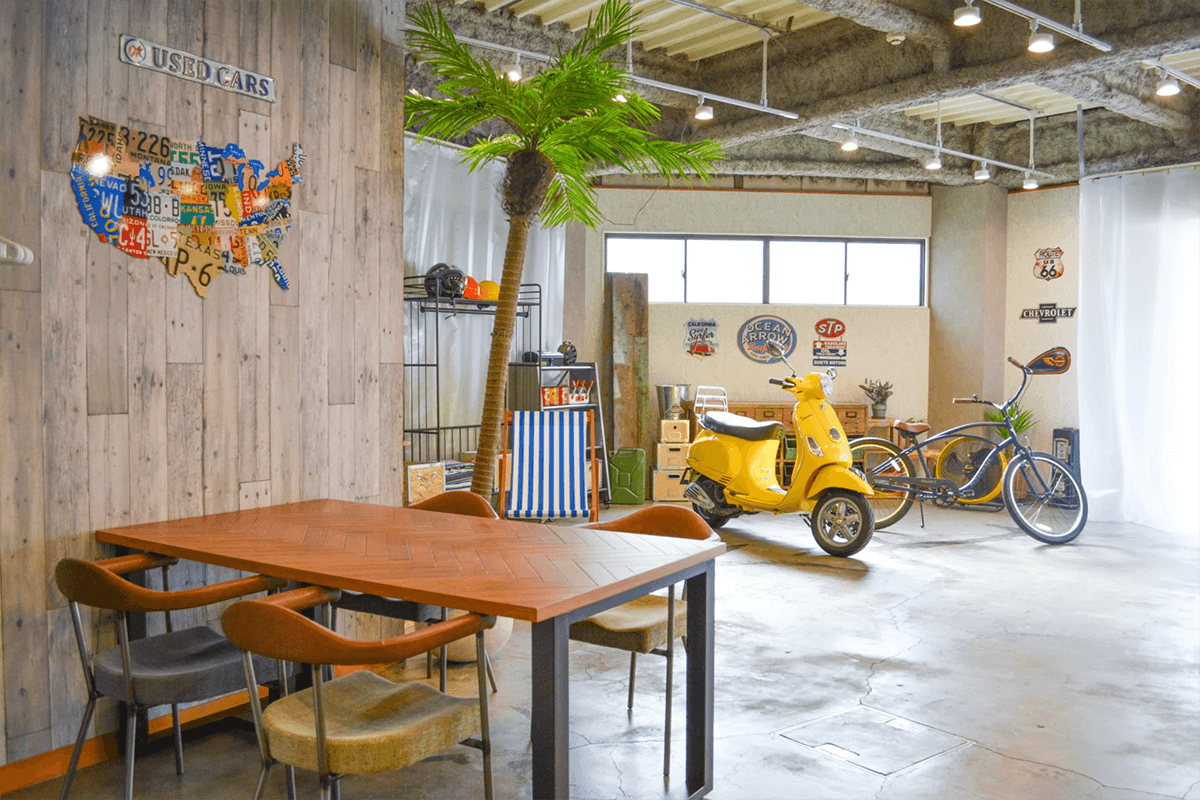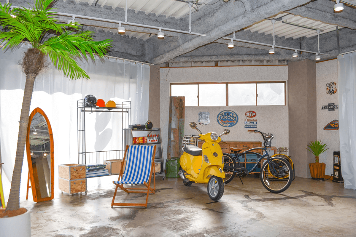 シーサイドガレージをイメージした撮影スタジオとなっており、ご自身の愛車を搬入して撮影も可能です♪