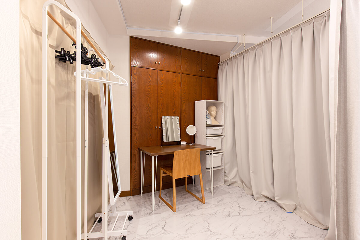 更衣スペースやメイク用のデスク・ミラーもございます♪