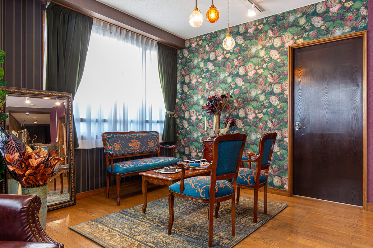 家具やインテリア・壁紙など、こだわりのアイテムで非日常の空間となっているので撮影のクオリティを高められますよ♪