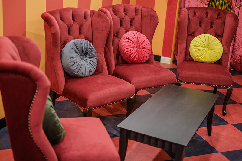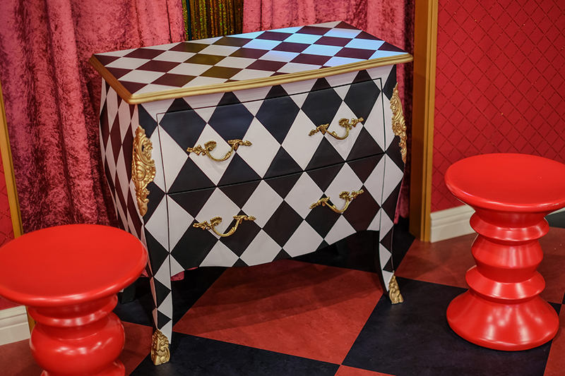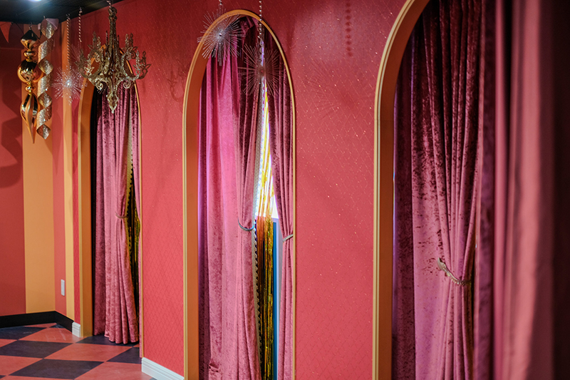 ストライプ壁面に格子柄の床・アーチ壁にベルベットカーテンなど内装の豪華さは勿論、より雰囲気を演出してくれる個性的な小物も充実で映え間違いなし!