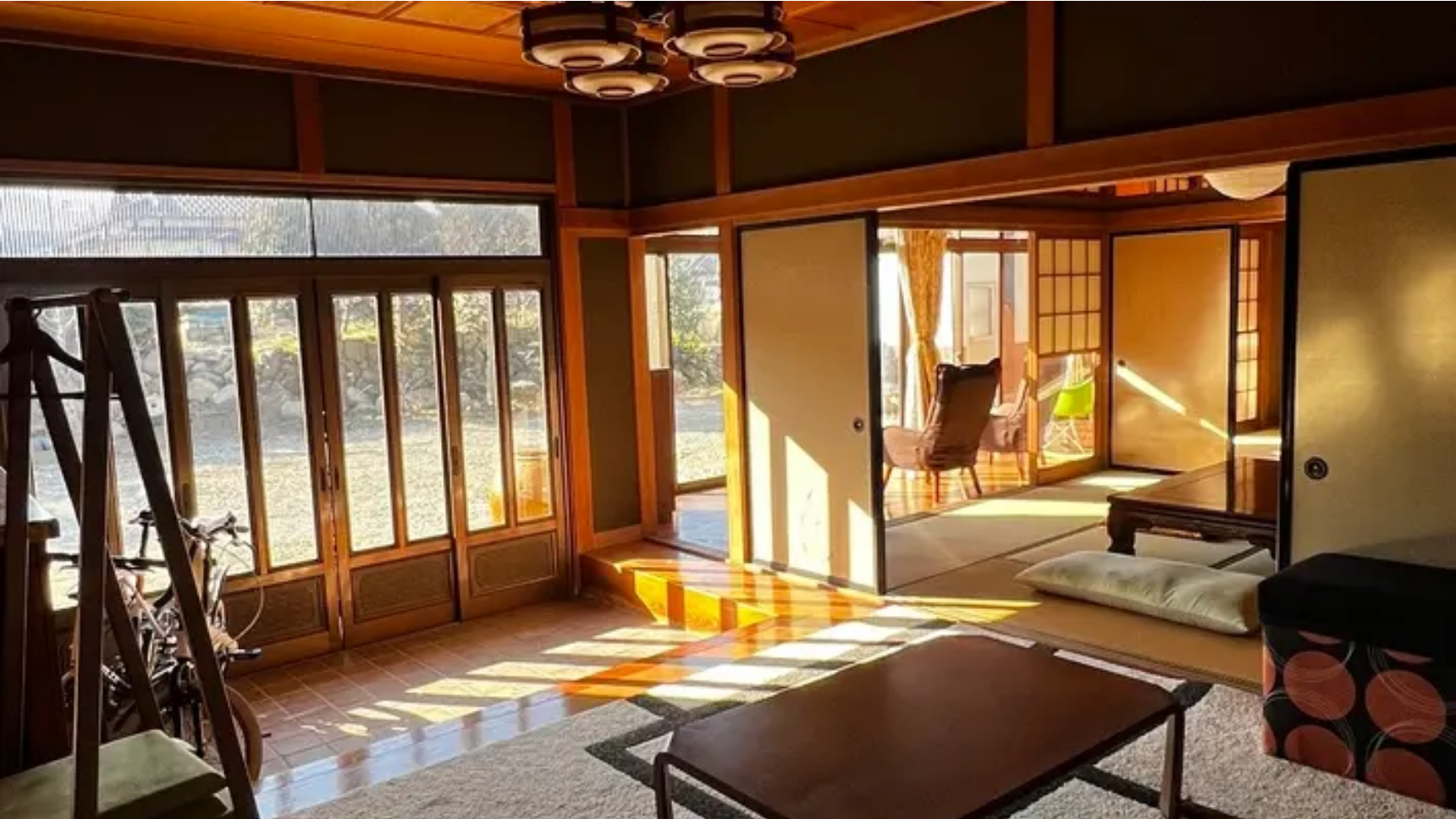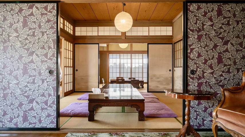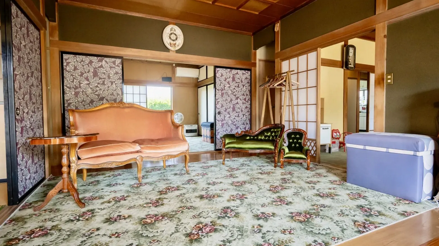 リノベーション済みの室内は、古民家の趣を残しつつも過ごしやすいモダンな雰囲気で、自然体のコスプレ撮影にもおすすめです。