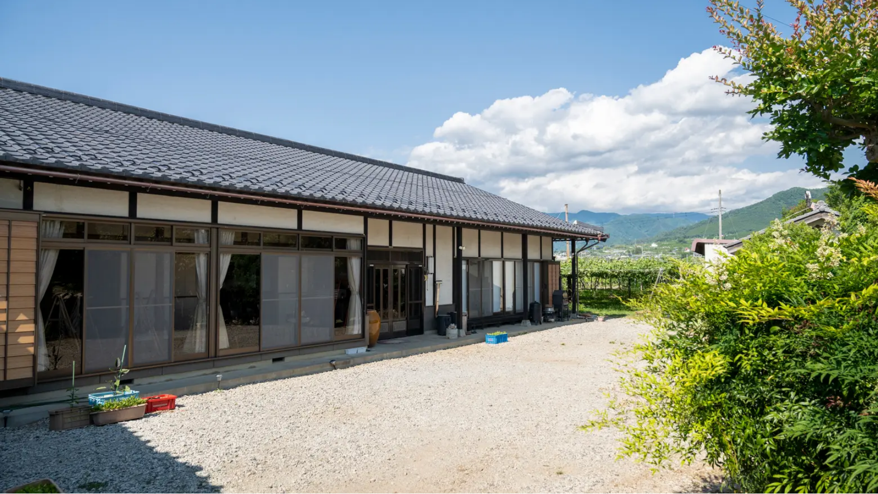 敷地内にはシャインマスカット畑もあり、農村ならではのロケーションを背景にした撮影が楽しめます。