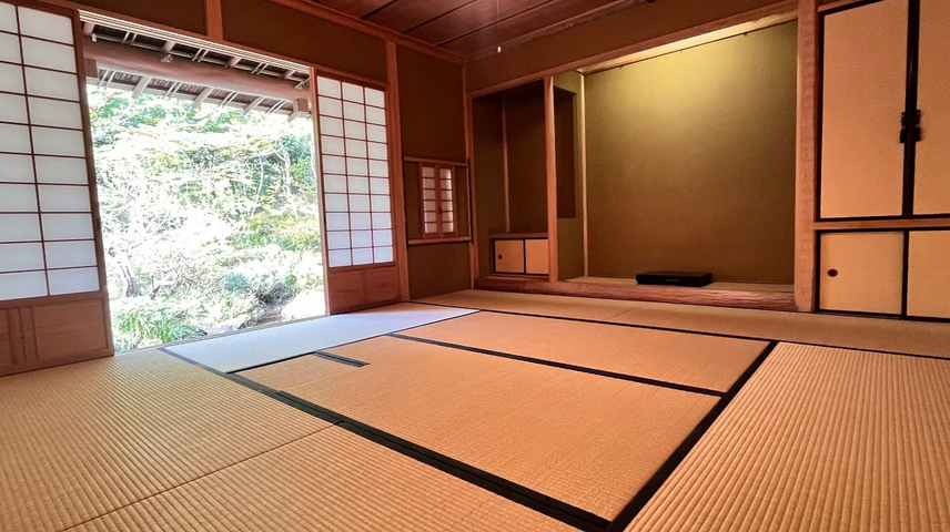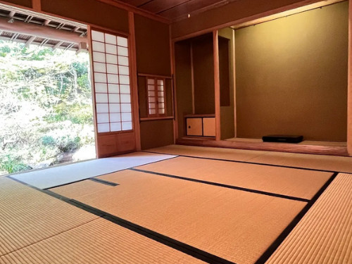 伝統的な数寄屋造の茶室は、自然光がやさしく差し込む美しい佇まいで、室内撮影にも向いています。